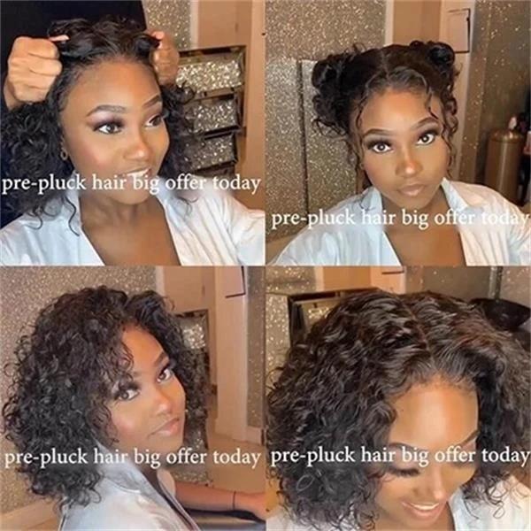 HOT Brazilian 370 Water Wave Lace Wigs Short black bob Wigs Lady Wig