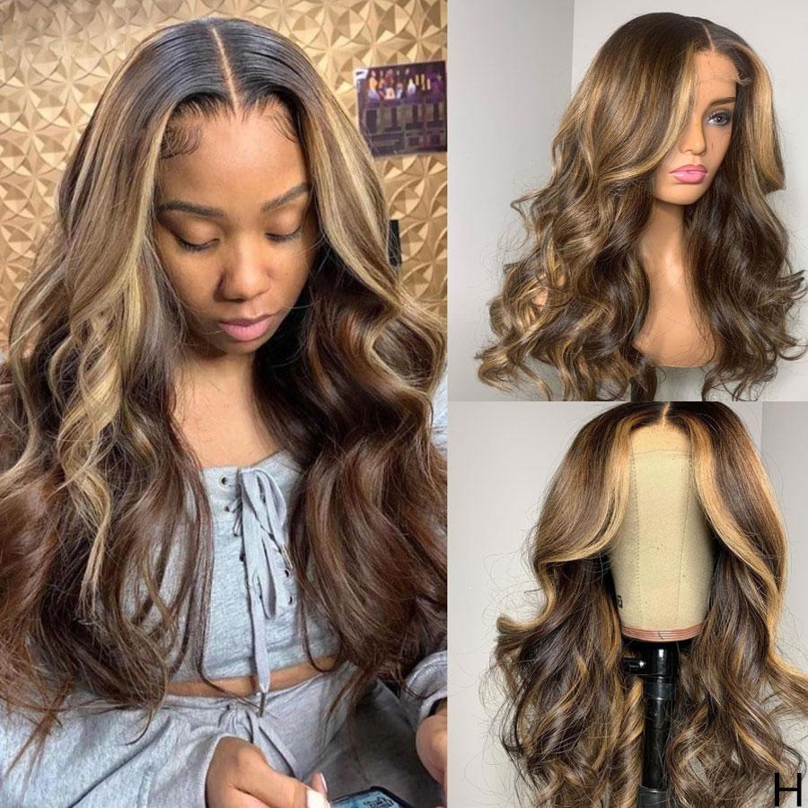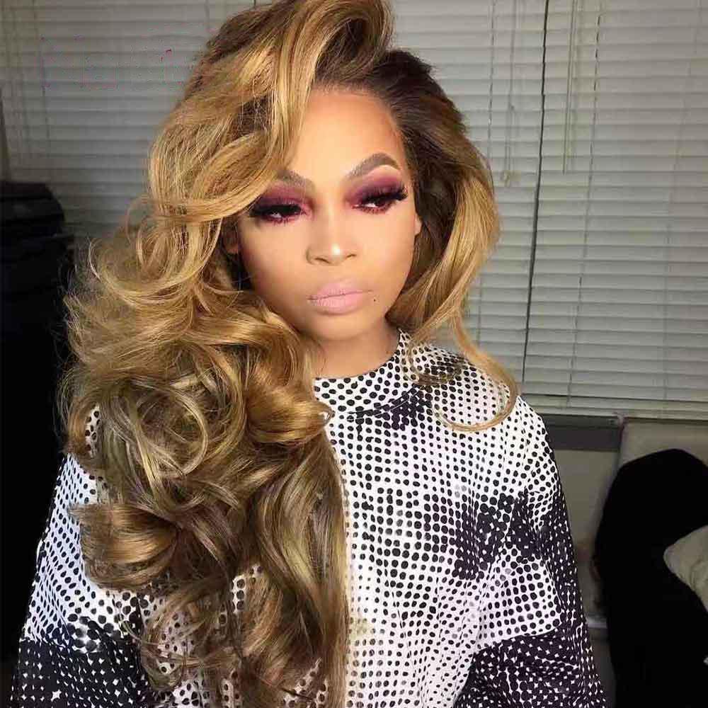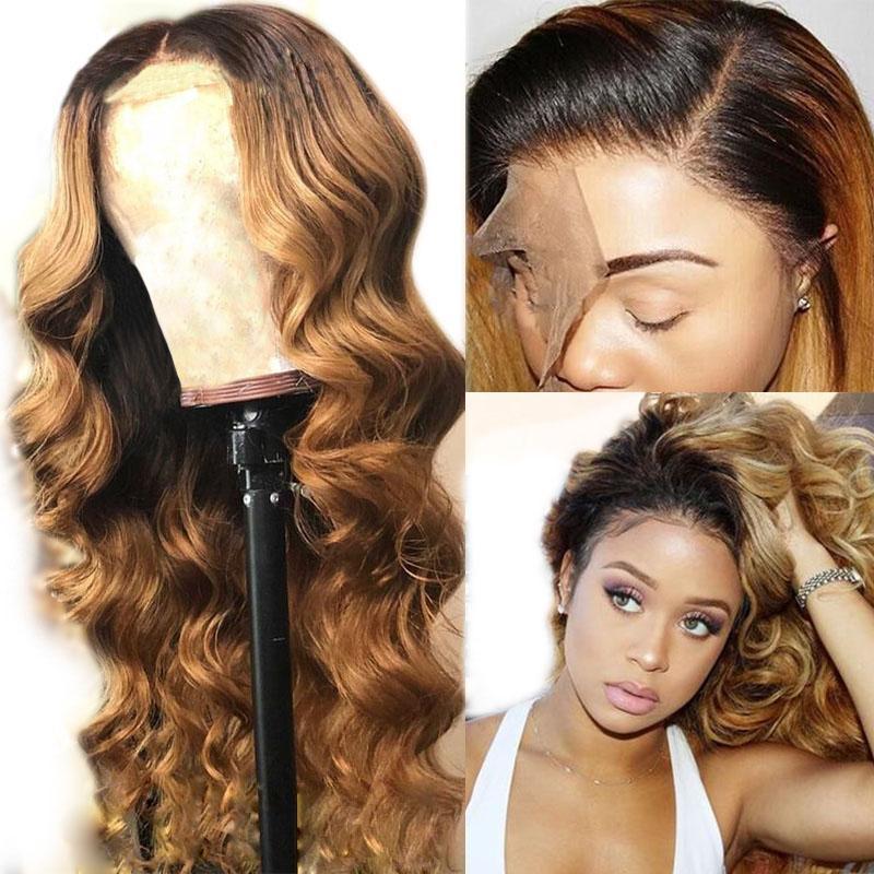 Full Lace fiber Hair Wigs With Baby Hair Brazilian Remy Hair Two Tone full Lace Bleached Knots