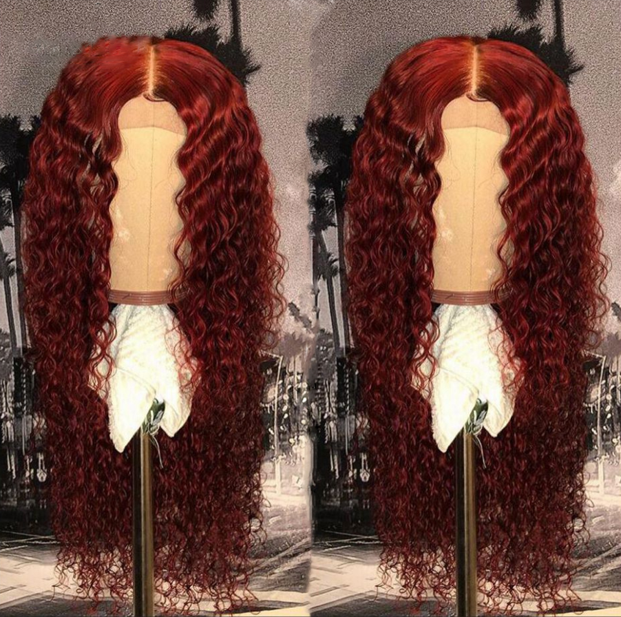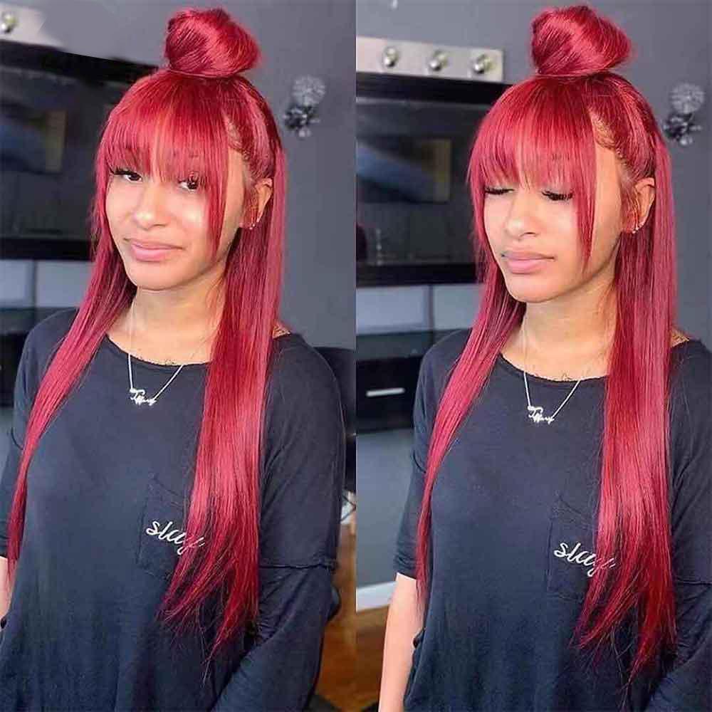 Brazilian fiber Hair Wigs Red Wine Color Lace Frontal fiber Hair Wigs With Baby Hair Burgundy Wig
