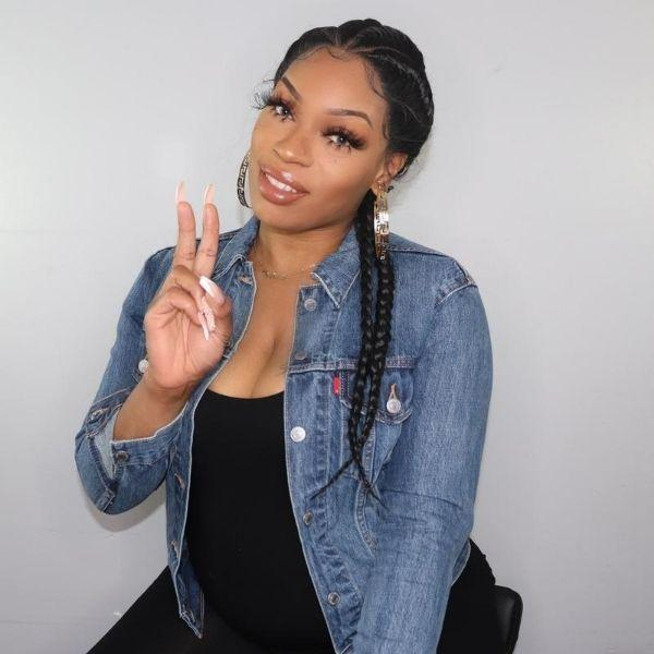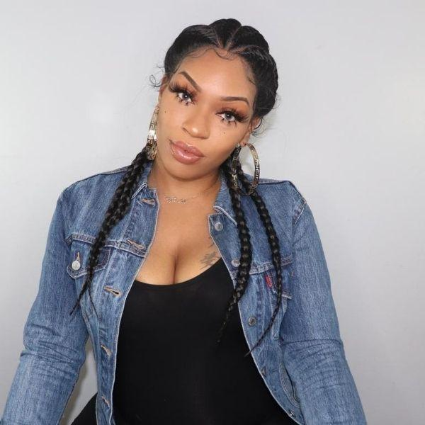 100% Hand-Braided 4 Dutch Braids Black Lace Wig