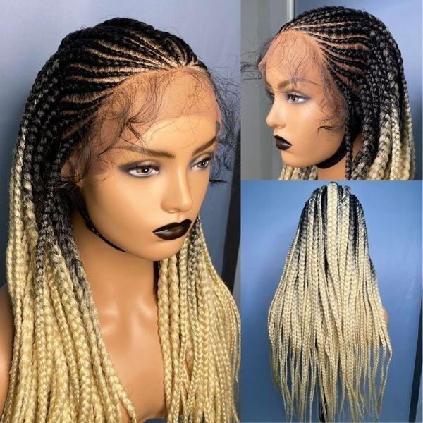 HOT SALEOmbre Blonde Pre-Braided Cornrow 13x6 Lace Frontal Braid Wig