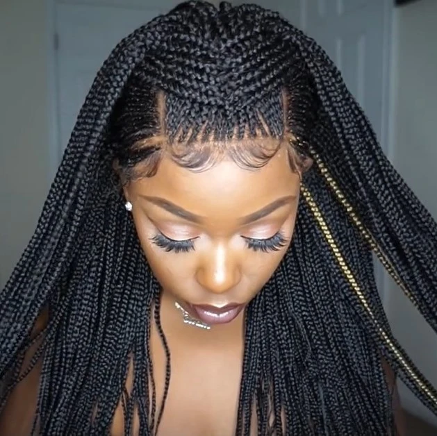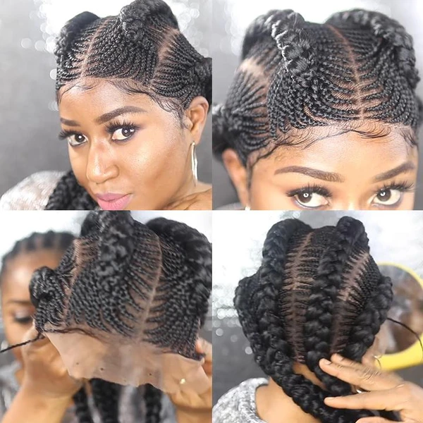 Hot Sales 100% Hand-Braided Side Part Cornrow 13x5 Braided Lace Wig