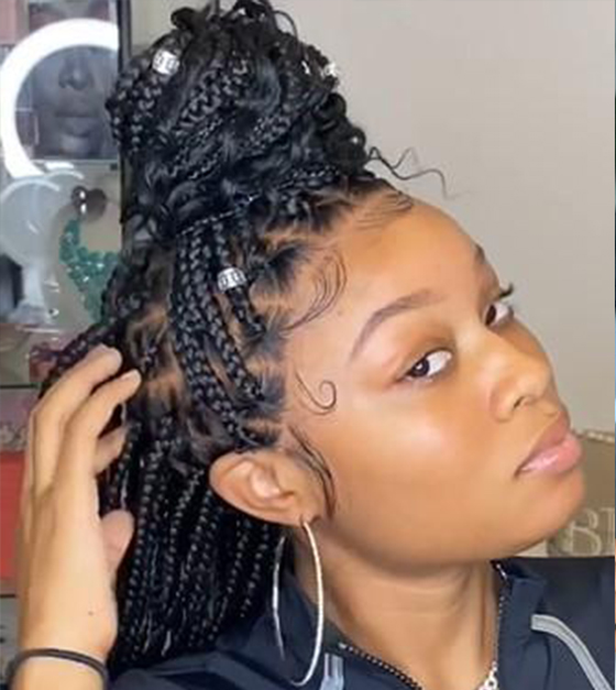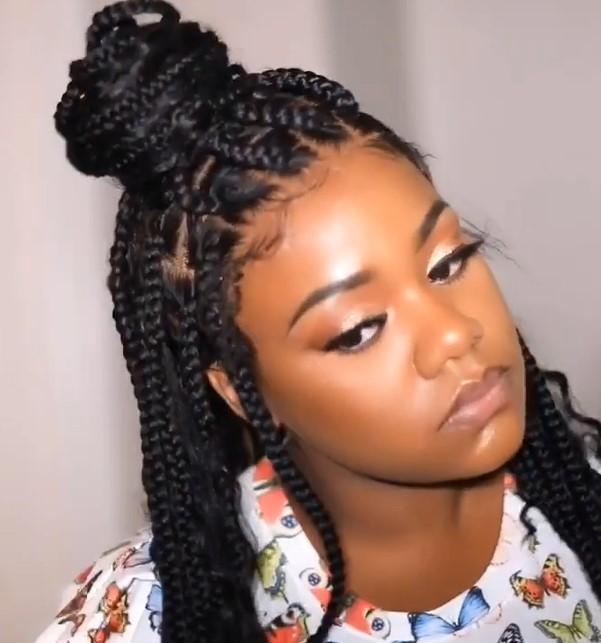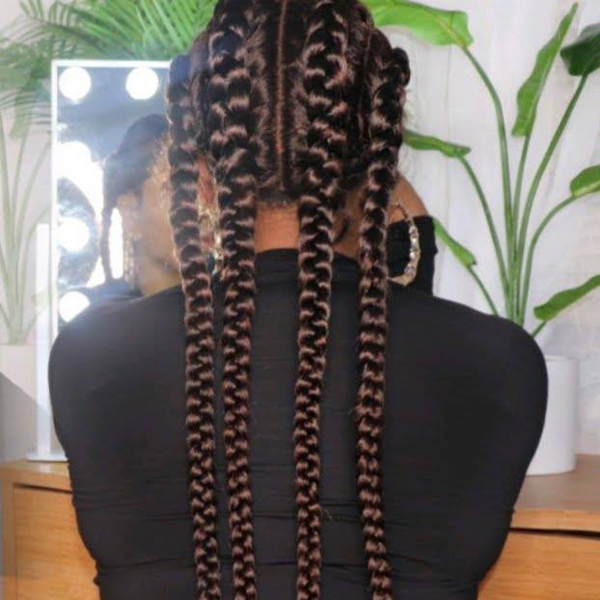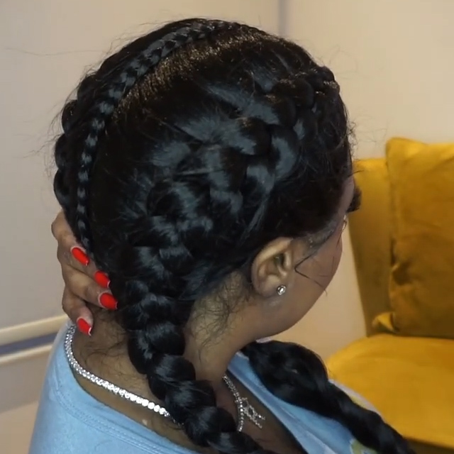 100% Hand Braided Cornrow Braids Wig With 4 Ponytails 2