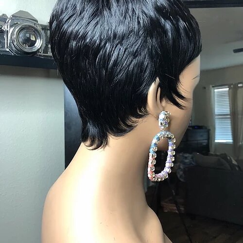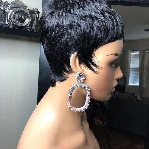 Hot SaleBlack Short Wavy Bob Pixie Cut With Bangs