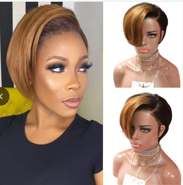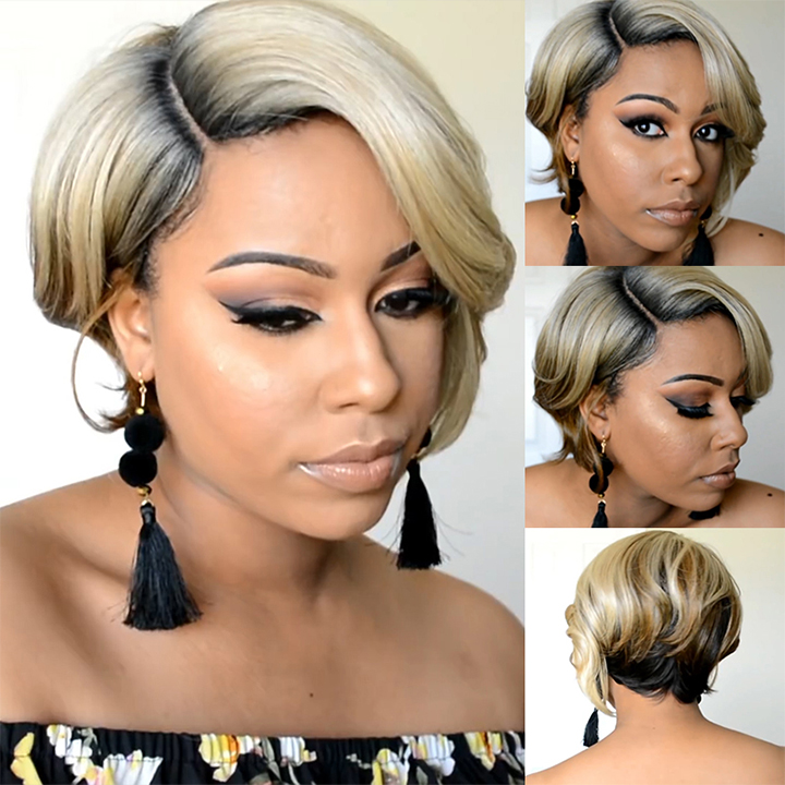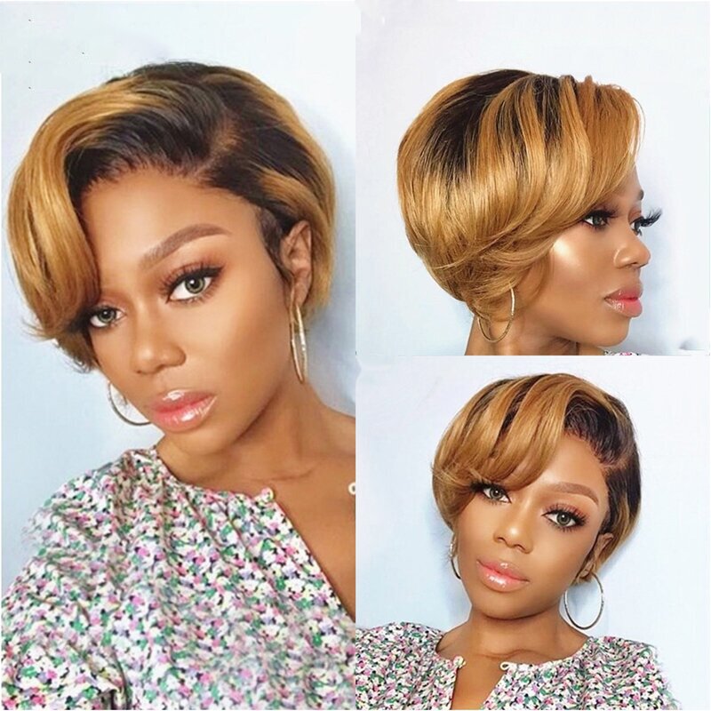 Hot SaleBlack Mix Gold Short Wave Bob Pixie Cut Wig