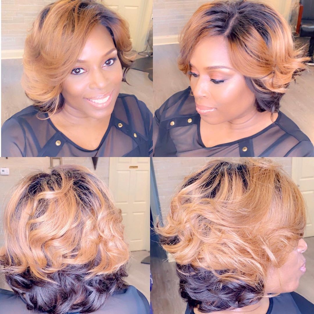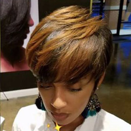 Hot SaleBlack Mix Gold Short Wavy Bob Pixie Cut With Bangs For Black Women