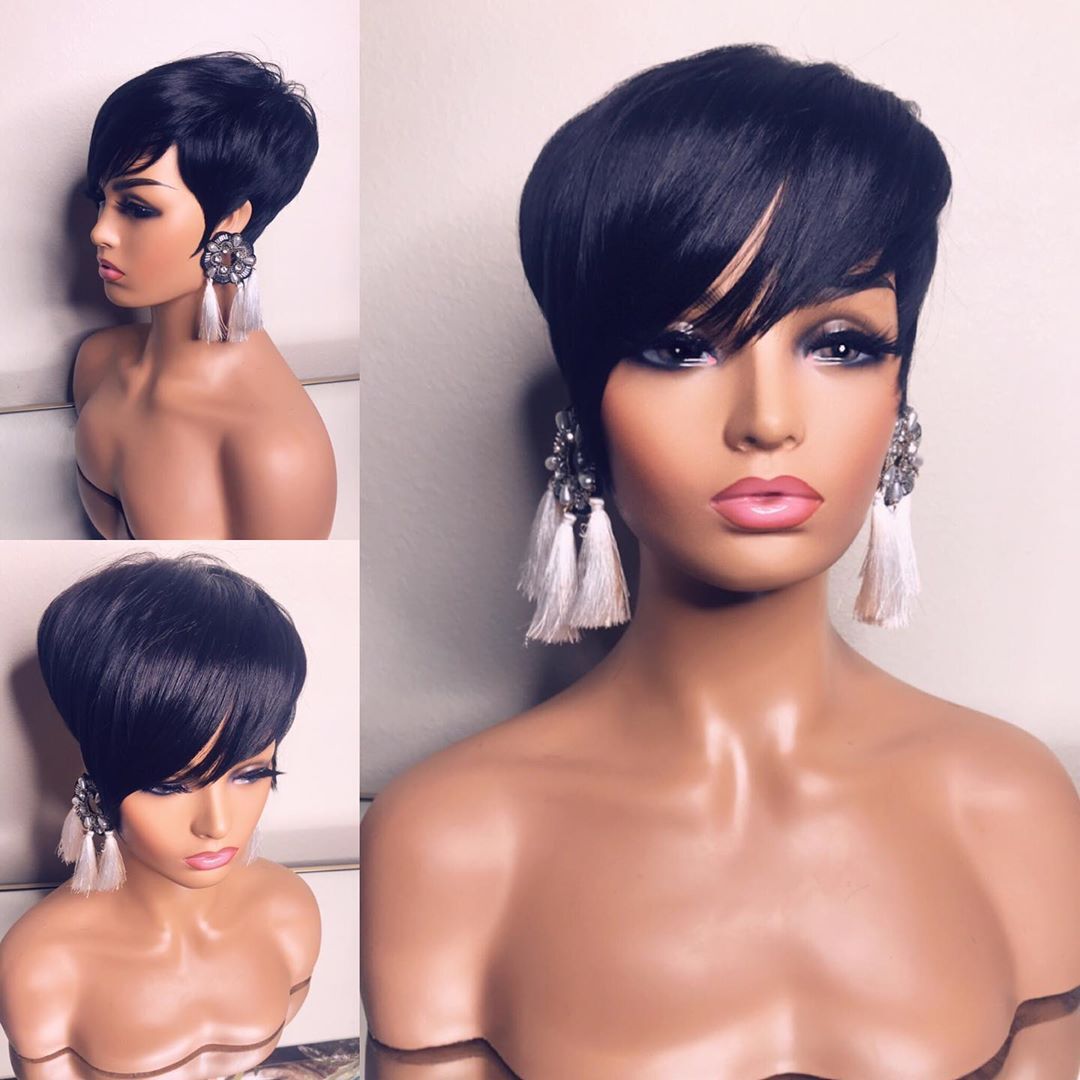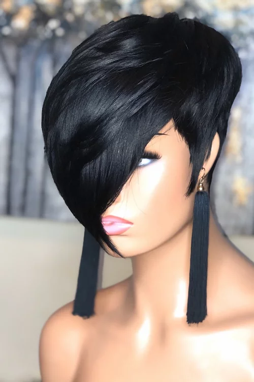 Hot SaleBlack Short Straight Bob Pixie Cut With Bangs